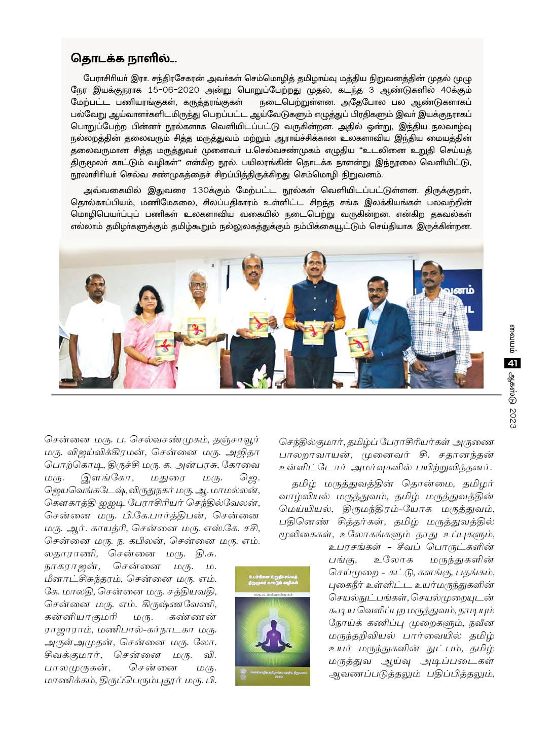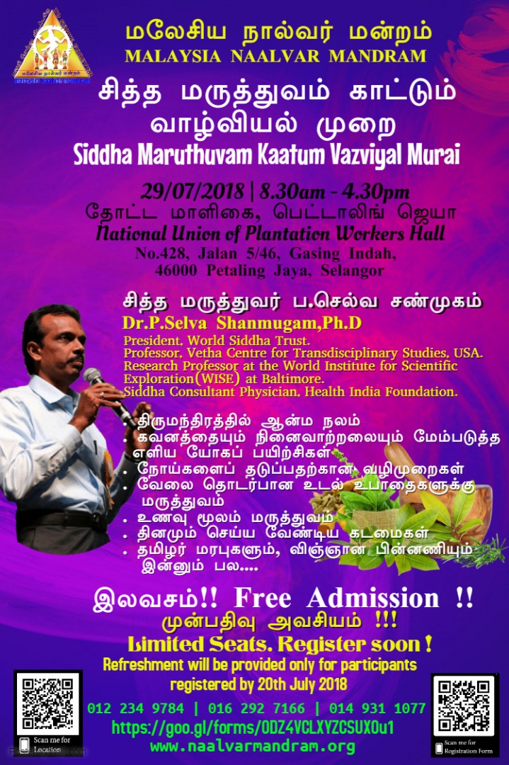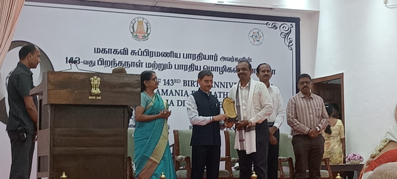 (11.12.2024) அன்று 143ஆவது மகாகவி பாரதியார் பிறந்தநாள் விழா மற்றும் பாரதிய மொழிகள் திருவிழா நிகழ்ச்சி கவர்னர் மாளிகையில் நடைபெற்றது. இவ்விழாவில் தமிழ் மொழி இலக்கியப் பணிகளுக்காக , சித்த மருத்துவர் திரு செல்வ சண்முகம் அவர்களுக்கு ஆளுநர் அவர்களிடமிருந்து பாராட்டுக் கேடயம் வழங்கப்பட்டது. செம்மொழி தமிழாய்வு மத்திய நிறுவனம் நிகழ்வுகளை ஏற்பாடு செய்திருந்தது.