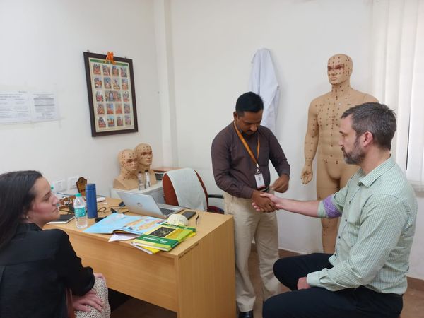 Dr. Jason Hickey and his PhD student from the University of New Brunswick, Canada Visited MAHE. During their visit, they entered the Division of Siddha to learn more about Traditional Siddha Medicine (TSM). Pulse diagnosis (naadi), Varma therapy, herbal formulations, and mineral nanoformulations were discussed in detail. SISMO OPD concept in collaboration with the National Institute of Siddha was explained. They got personal experience with Varma therapy for neck/shoulder pain. We also discussed the opportunity to introduce Siddha Varmam Therapy as an elective to Canadian health education. We expressed our interest to accommodate them for a short-term course on Siddha Varmam Therapy at MAHE.